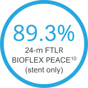 1. BIOFLEX-I SSED, data on file; 2. Bosiers M. et al. 4-French–compatible endovascular material is safe & effective in the treatment of femoropopliteal occlusive disease: Results of the 4EVER Trial. J ENDOVASC THER 2013; 20:746-756; 3. Lichtenberg M. et al. PEACE I All-Comers Registry: Patency Evaluation After Implantation of the 4-French Pulsar-18 Self-Expanding Nitinol Stent in Femoropopliteal Lesions. J ENDOVASC THER 2014; 21:373–380; 4. Lichtenberg M. Superficial Femoral Artery TASC D registry: 12-month effectiveness analysis of the Pulsar-18 SE nitinol stent in patients with critical limb ischemia. J Cardiovasc Surg. 2013; 54:433-9; 5. Lichtenberg et al. Evaluation of the 4-French Pulsar-18 Self-expanding Nitinol Stent in Long Femoropopliteal Lesions. Clinical Medicine Insights: Cardiology 2014:8(S2) 37–42 doi: 10.4137/CMC.S15224; 6. Evaluation of Market Acceptance 162091, data on file; 7. Accuracy of Stent Placement Design Verification and Validation 145265, data on file; 8. Zhao HQ Late stent expansion and neointimal proliferation of oversized nitinol stents in peripheral arteries. Cardiovasc. Interv. Radiol. 2009; 32(4); 720-6; 9. Bosiers M 4EVER 24m: long-term results of 4F Pulsar stent. Presented at: Cirse, 2013. Barcelona,Spain; 10. Lichtenberg et al. Effectiveness of the Pulsar-18 self-expanding stent with optional drug-coated balloon angioplasty in the treatment of femoropopliteal lesions – the BIOFLEX PEACE All-Comers Registry. Vasa (2019), 1-9. doi_10.10240301- 1526a000785; 11. Freeman JW, et al. A link between stent radial forces and vascular wall remodeling: the discovery of an optimal stent radial force for minimal vessel restenosis. Connect Tissue Res. 2010 Aug; 54(4): 314-26; 12. Koskinas C. Role of endothelial shear stress in stent restenosis and thrombosis: pathophysiologic mechanisms and implications for clinical translation. JACC 2012 10;59(15):1337-49; 13. Koppara T. Thrombogenicity and early vascular healing response in metallic biodegradable polymer-based and fully bioabsorbable drug-eluting stents. Circ Cardiovasc Interv.2015 8(6):e002427; 14. data on file. 6.0 mm diameters. Supera stent not possible to test due to its design and applied test method.
